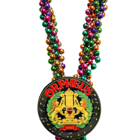 6 pieces - Fringe Bead Necklace with Printed Poly medallion